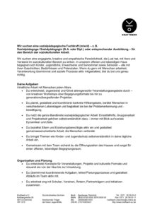 Stellenausschreibung sozialpädagogische Fachkraft (mwd)